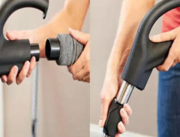 3. When you finish, the suction from your central vacuum power unit pulls the hose back inside the vacuum tubing in the wall and out of sight. Then you simply carry your handle to the next inlet and repeat the process.